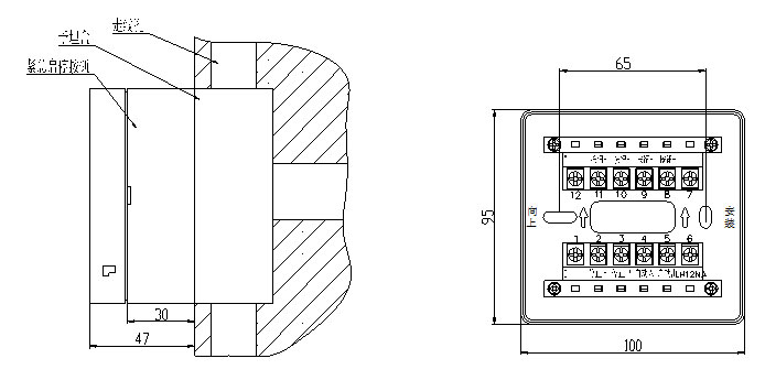 啟/停按鈕上蓋與底殼之間采用插接方式,采用明裝方式,安裝時應(yīng)注意方向。安裝時可將底殼安裝在標(biāo)準(zhǔn)預(yù)埋盒上,安裝方式及安裝孔距如下圖所10.6所示:
