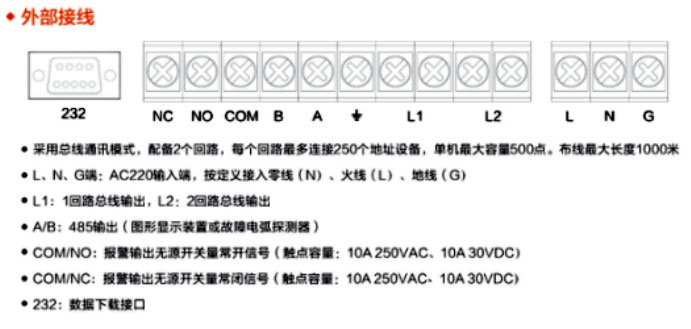 • 接口:1路RS485接口配接消防CRT或故障電弧探測器、1路消防聯(lián)動信號